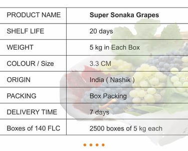 - Grapes for export are primarily sourced from grape-growing regions in Maharashtra, Karnataka, and other suitable climates.