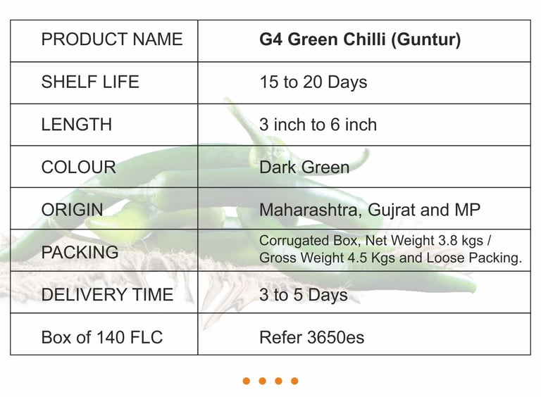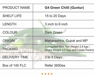 a. Region: Sourced from regions renowned for cultivating high-quality green chillies, ensuring optimal climatic conditions.
